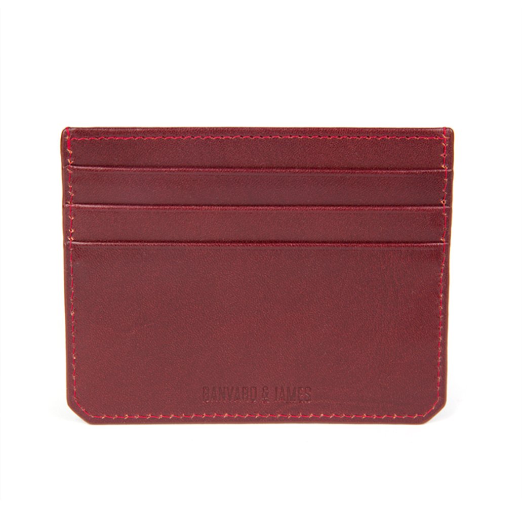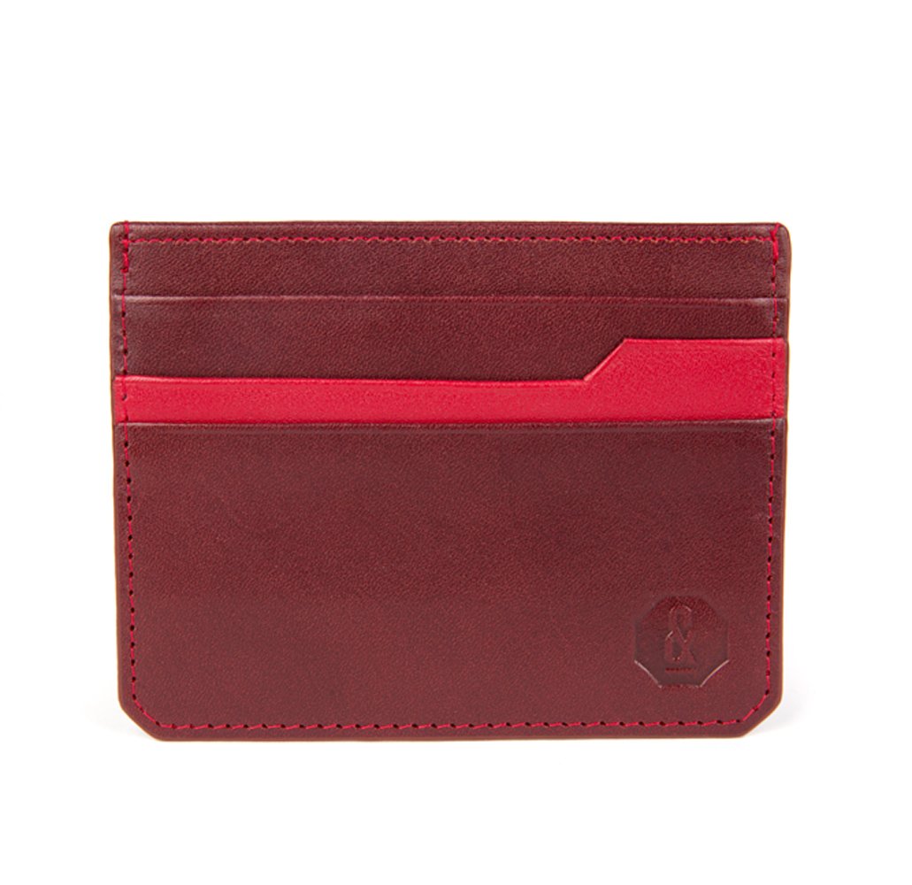 This expertly crafted wine and red vegetable-tanned leather card holder is a streamlined and stylish way to keep cards, notes and receipts well organised. With six slots for cards and a central pouch for notes or receipts, this is an incredibly useful and compact accessory for the modern gentleman on the go.