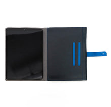 This iPad organiser is hand-made using the finest Italian vegetable-tanned leather. Using traditional Italian methods of tanning ensures the highest level of quality, resulting in leather with a rich patina that becomes even more supple and beautiful with time. Contrasting coloured leather and stitching details brings this accessory firmly into the twenty first century.