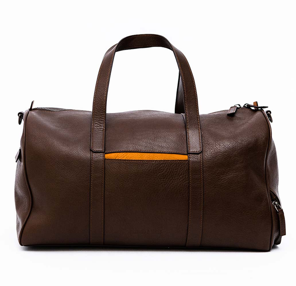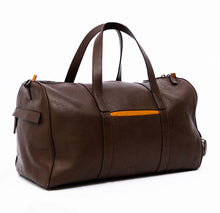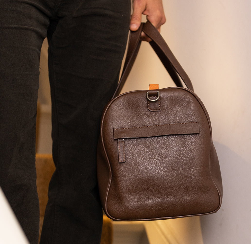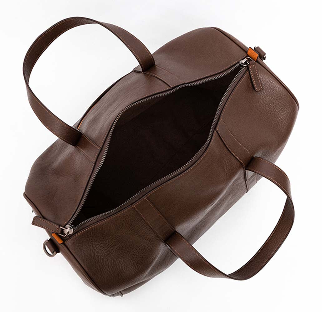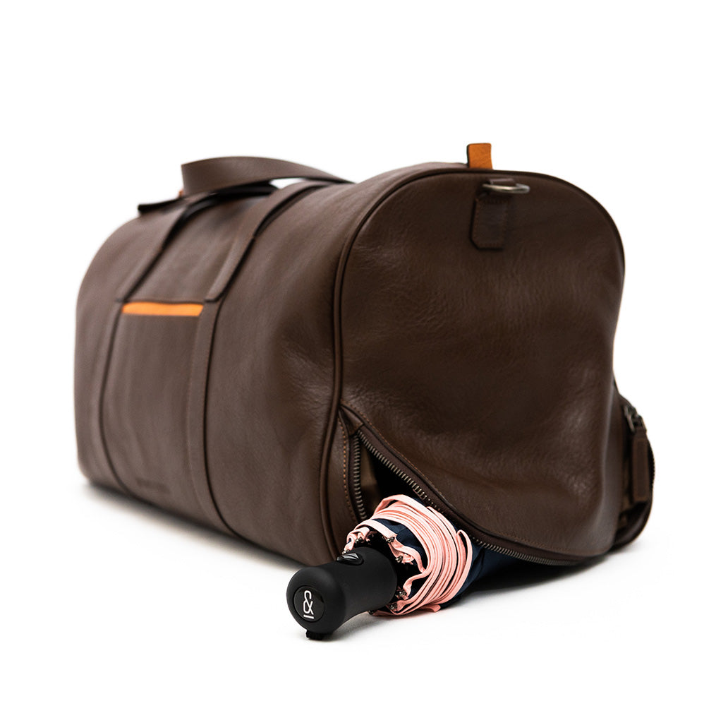 The Keating Holdall is the ultimate in luxury and style. It is made from the finest chocolate brown Italian leather with burnt orange detailing and is lined in the softest suede. Large enough to fit everything you need for a weekend away, we also think it makes a super stylish gym bag. The bag features a handy waterproof pocket at one end which is the ideal place to store your telescopic umbrella or a pair of shoes. The other end of the bag includes a secure zipped pocket and there are also zipped pockets inside the bag to keep your keys or other essentials safe. Wear it over your shoulder with the removal shoulder strap or simply use the leather handles.