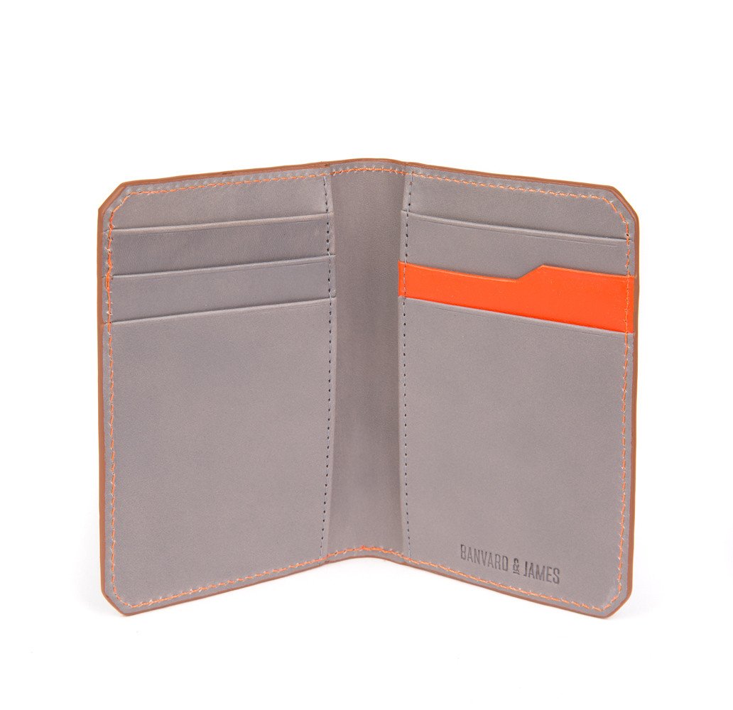 This expertly crafted tan and orange vegetable-tanned leather card wallet is a compact and stylish way to keep cards, notes and receipts well organised. With six slots for cards and a two pouches for additional cards, notes or receipts, this is an incredibly useful and compact accessory for the modern gentleman on the go.